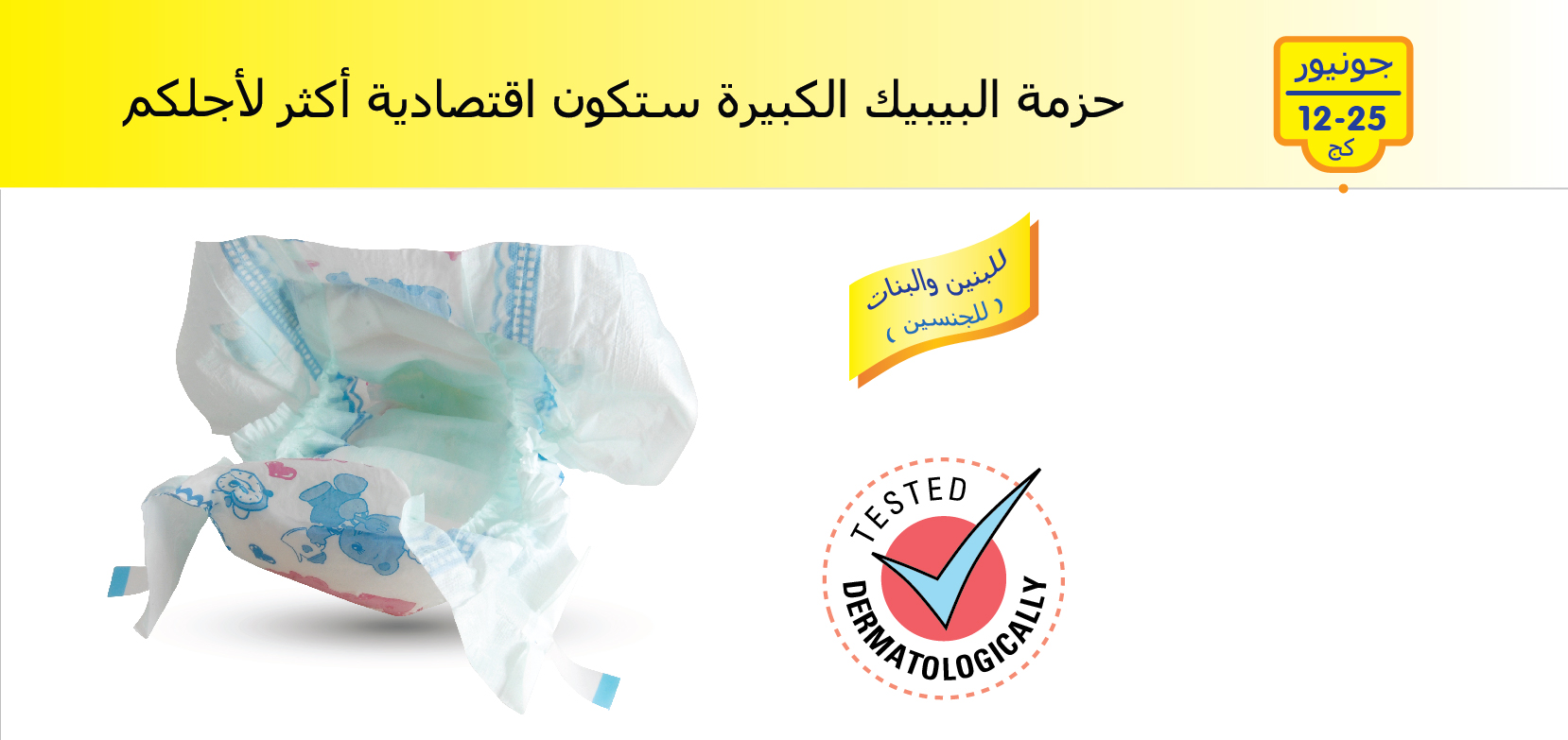 • وتناسب مجموعة منتجات لكل طفل مع خط الانتاج حيث تشمل كل فئات العمرية (مينى، ميدي، ماكسي، جونيور).