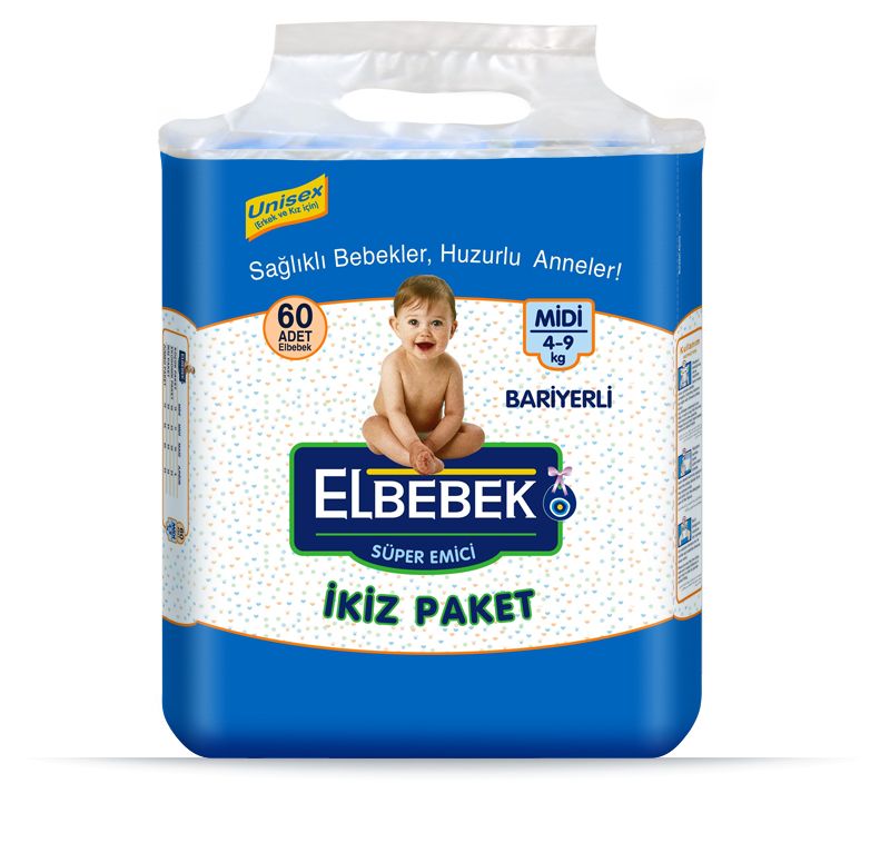 Les couches Elbebek accompagne votre bébé à tous moments à partir de la naissance de votre bébé et au cours de son développement avec ses différentes tailles fabriqué selon le poids de votre bébé.Suivant son slogan"Bébé en santé , mères sereines", Elbebek permet votre bébé de jouer joyeusement pendant la journée et de dormir sans interruption pendant la nuit en octroyant l'humidité dont votre bébé a besoin. Grâce à sa couche extra humide,la couche conserve le bas de votre bébé humide nuit et jour,cela permettant au bébé de dormir sans interruption en paix et de se réveiller en bonne humeur.En comptant sur l'étroitesse beauté anatomique de Elbebek entre les pieds ce qui prévient l'accumulation de la couche entre les pieds et facilite ainsi la marche,les mouvements du bébé qui essaie de ramper et marcher toute la journée ne sont pas restreint. Elbebek absorbe rapidement le liquide et le transfère à la couche interne, diffusant le liquide grâce à sa couche de diffusion interne antivirus l'enfermant dans les gels.Avec sa grande capacité d'absorption il peut absorber et renfermer plus de liquide.La couche peut être en harmonie parfait avec le corps de votre bébé et prendre la forme du corps de votre bébé. Grâce à la spécialité de FORME DE ELBEBEK ,les mouvements de votre bébé ne sont pas restreint, permettant une liberté d' action à votre bébé. Cette couche prévient toute fuite aux moyens de ses barrières.La surface spécialement designer de Elbebek garde libre et impulsive la sensibilité de la peau de votre bébé. Avec Elbebek les bébés sont toujours souriant et les mamans à l'aise.