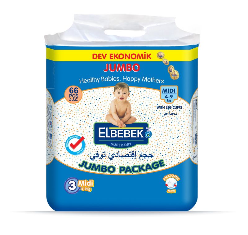 Les couches Elbebek accompagne votre bébé à tous moments à partir de la naissance de votre bébé et au cours de son développement avec ses différentes tailles fabriqué selon le poids de votre bébé.Suivant son slogan"Bébé en santé , mères sereines", Elbebek permet votre bébé de jouer joyeusement pendant la journée et de dormir sans interruption pendant la nuit en octroyant l'humidité dont votre bébé a besoin. Grâce à sa couche extra humide,la couche conserve le bas de votre bébé humide nuit et jour,cela permettant au bébé de dormir sans interruption en paix et de se réveiller en bonne humeur.En comptant sur l'étroitesse beauté anatomique de Elbebek entre les pieds ce qui prévient l'accumulation de la couche entre les pieds et facilite ainsi la marche,les mouvements du bébé qui essaie de ramper et marcher toute la journée ne sont pas restreint. Elbebek absorbe rapidement le liquide et le transfère à la couche interne, diffusant le liquide grâce à sa couche de diffusion interne antivirus l'enfermant dans les gels.Avec sa grande capacité d'absorption il peut absorber et renfermer plus de liquide.La couche peut être en harmonie parfait avec le corps de votre bébé et prendre la forme du corps de votre bébé. Grâce à la spécialité de FORME DE ELBEBEK ,les mouvements de votre bébé ne sont pas restreint, permettant une liberté d' action à votre bébé. Cette couche prévient toute fuite aux moyens de ses barrières.La surface spécialement designer de Elbebek garde libre et impulsive la sensibilité de la peau de votre bébé. Avec Elbebek les bébés sont toujours souriant et les mamans à l'aise.